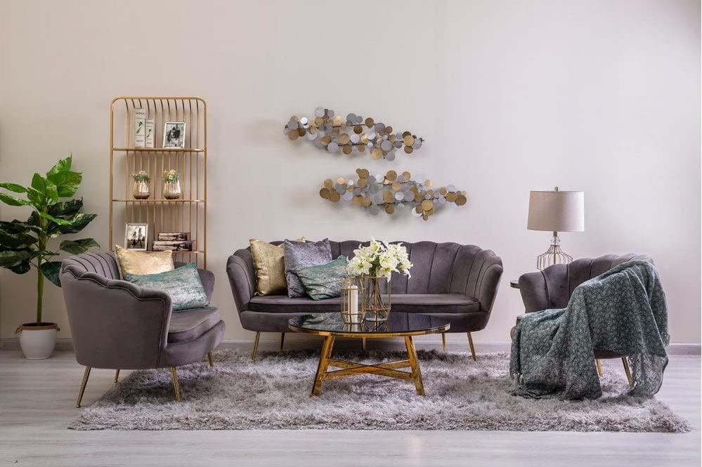 Antique Wood Hub Modern Chesterfield Vertical Tufted Curved Sofa Furniture for Living Room Guest Room Hotels (Grey)