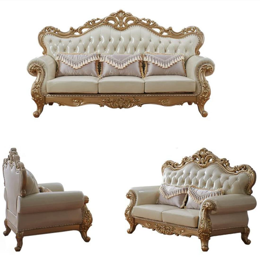 IRONIC HOUSE Luxury Design Traditional Sky Land Sofa Set Carving with Solid Sag wan Wooden Sofa Set for Small Apartments, Living Room Golden DCO Polished 3+1+1 with Center Table Sky Blue