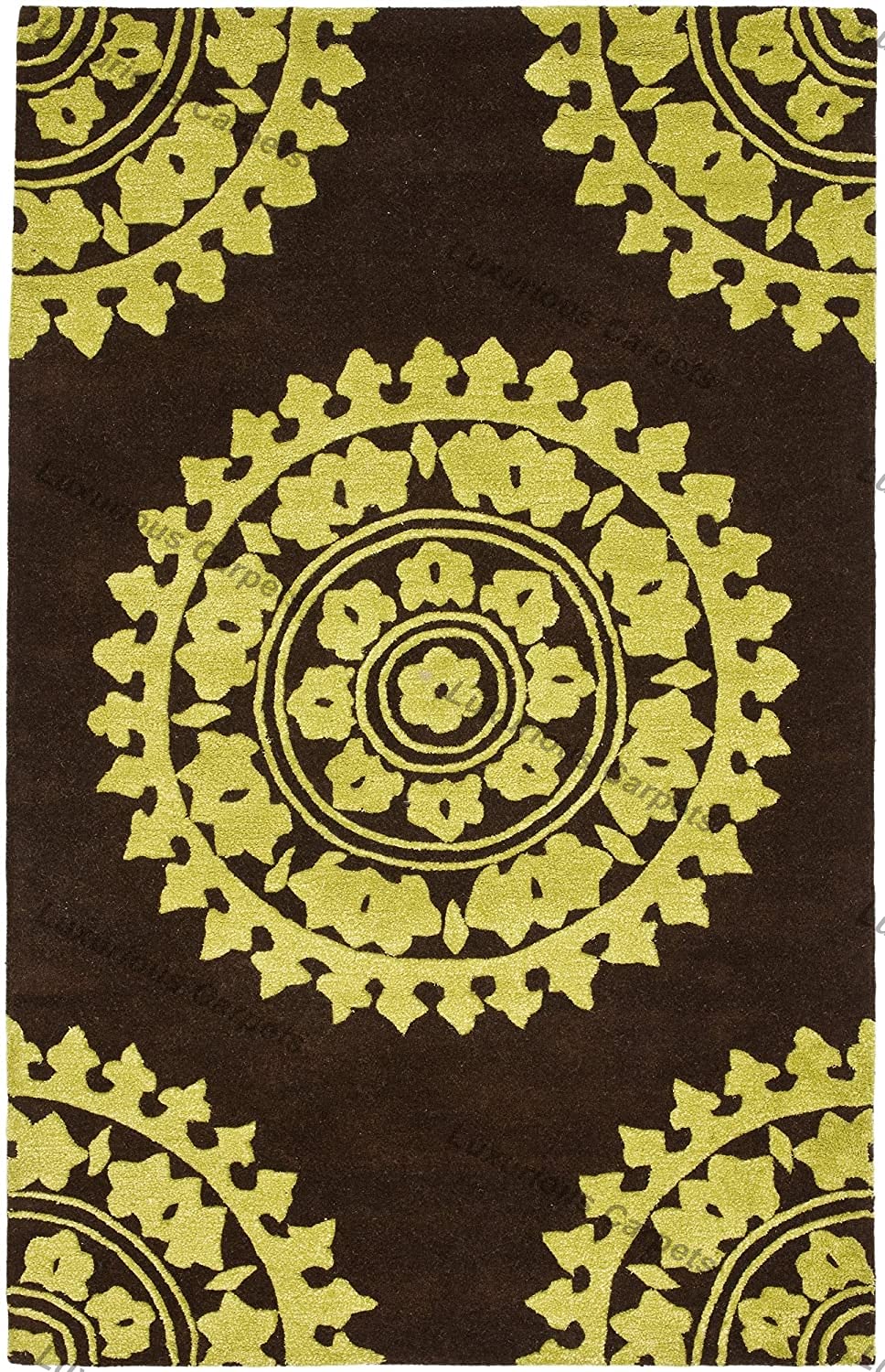 Luxurious Carpets Bellagio Collection Handmade Premium Woolen & Blend Carpet for Living Room Bedroom and Hall with 1″ Inch Thickness 5 x 7 feet Color