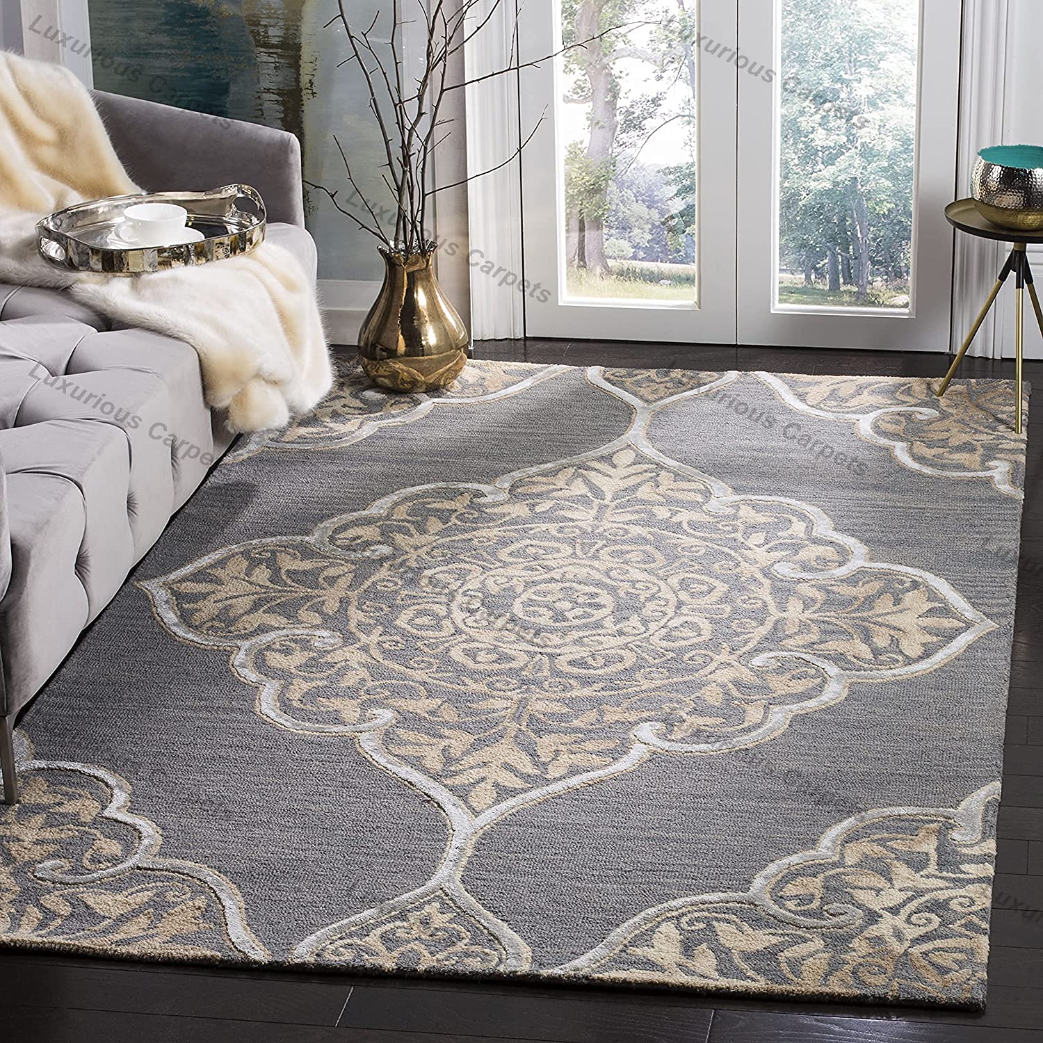 Luxurious Carpets Bellagio Collection Handmade Premium Woolen & Blend Carpet for Living Room Bedroom and Hall with 1″ Inch Thickness 3 x 6 feet Color
