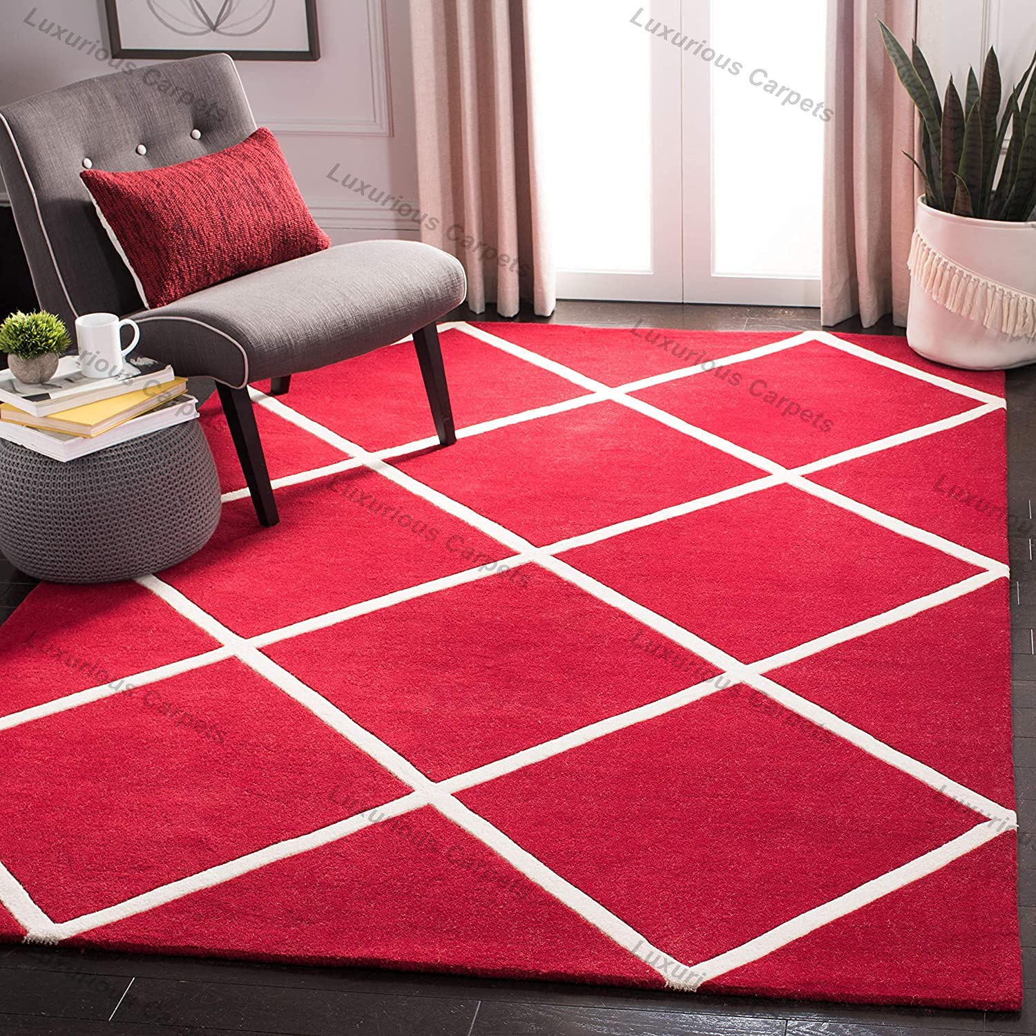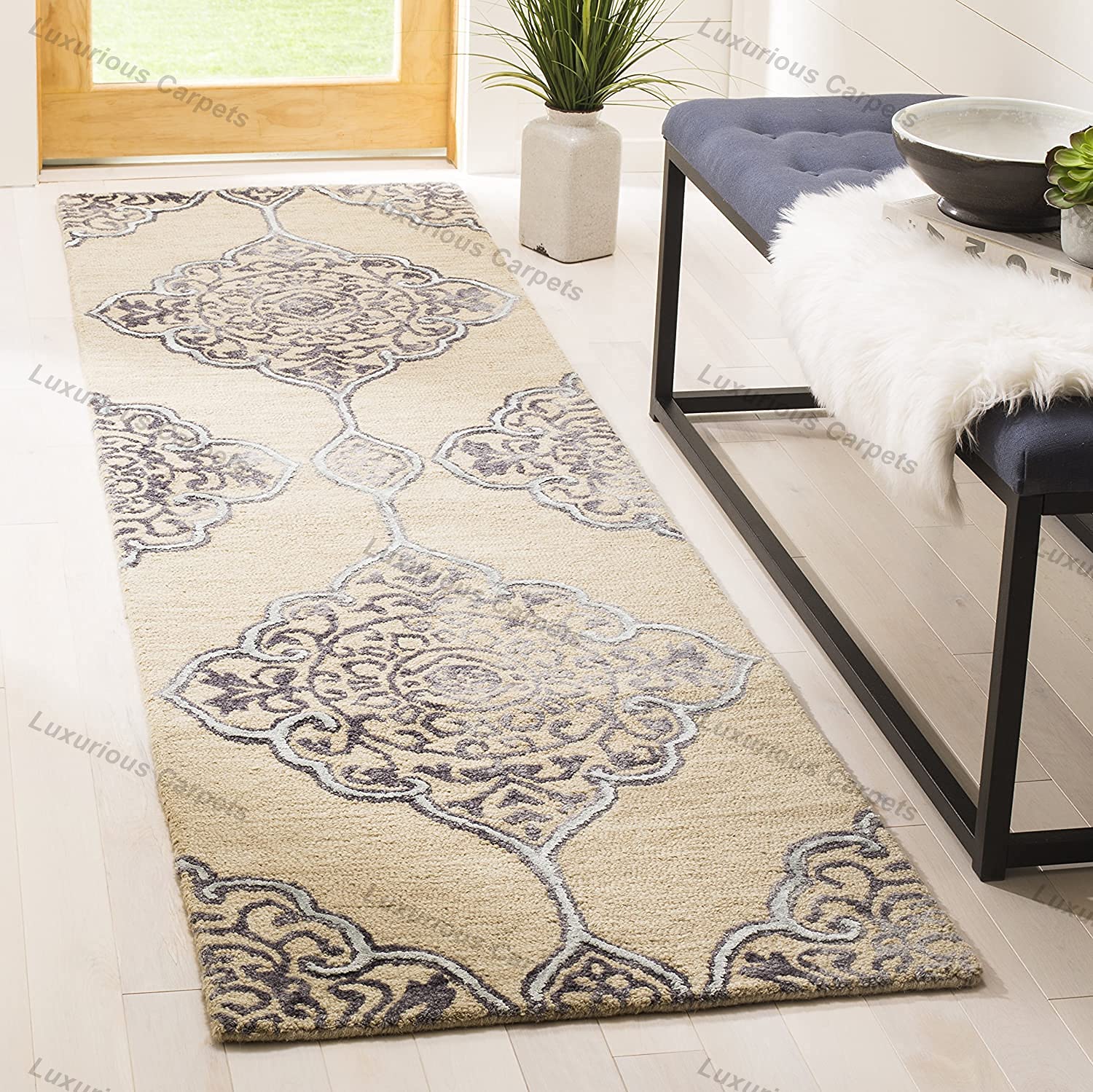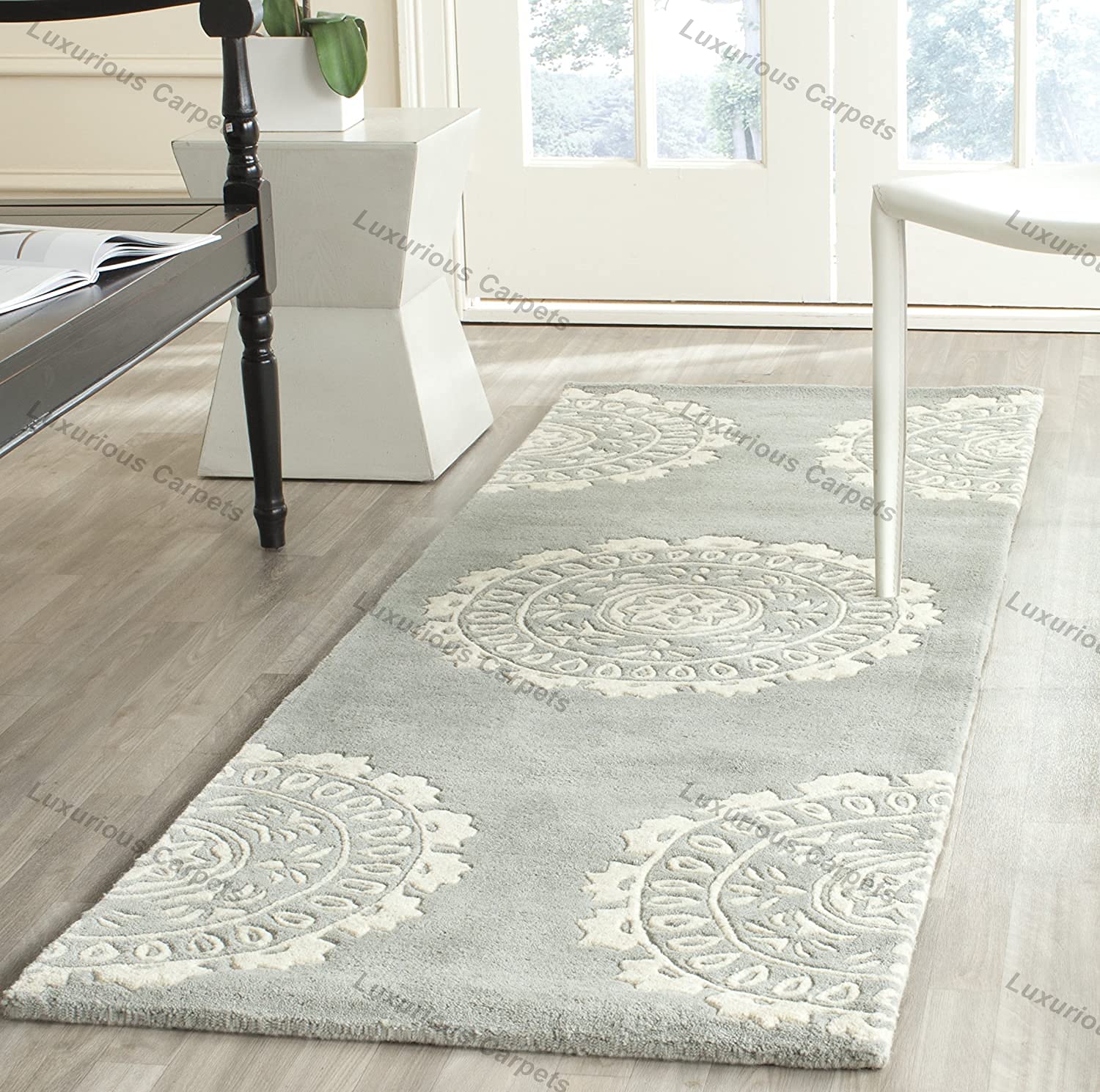 Luxurious Carpets Bellagio Collection Handmade Premium Woolen & Blend Carpet for Living Room Bedroom and Hall with 1″ Inch Thickness 2 x 6 feet Color