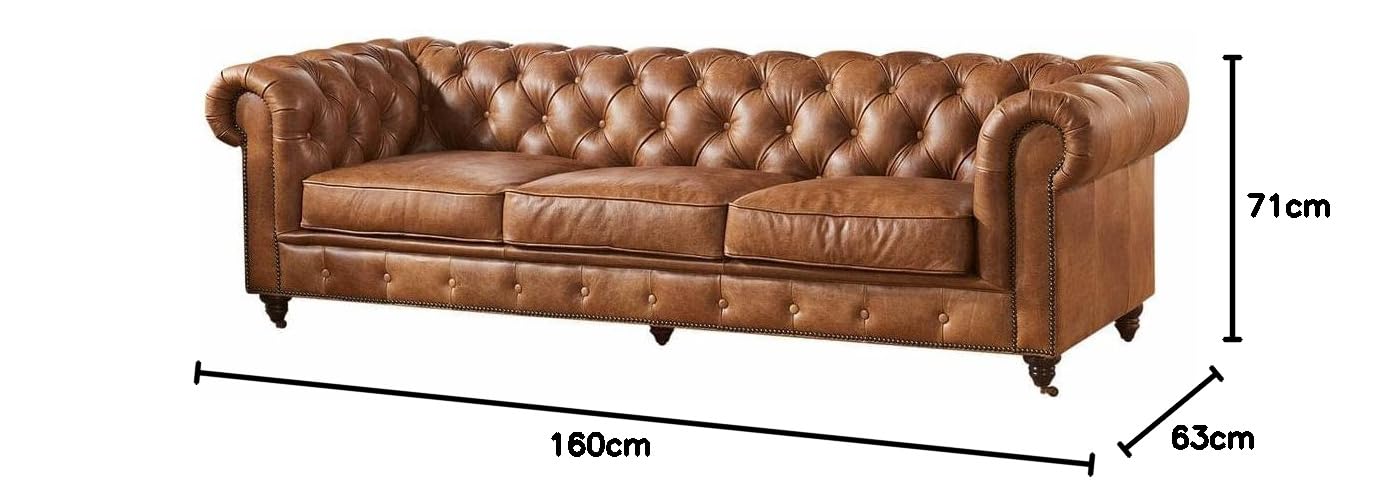 Material: wooden frame + chesterfield leatharrate cover, Dimensions: 3 seater 206 x 84 x 80 cm 2 seater 155+84+80 cm 0(L x W x H)