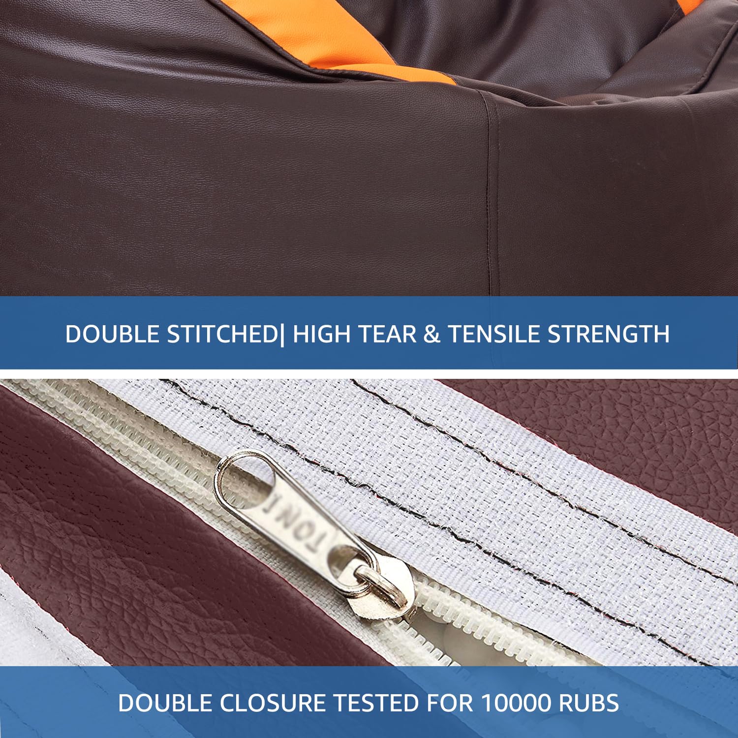 UNMATCHED DURABILITY: faux leather is less susceptible to cracking, fading or peeling, ensuring the bean bag retains its luxurious look over time. It can withstand regular use and is less prone to tearing or puncturing. Zippers, Steel pullers used for dual closure are sturdy and tested for over 5000 pulls.