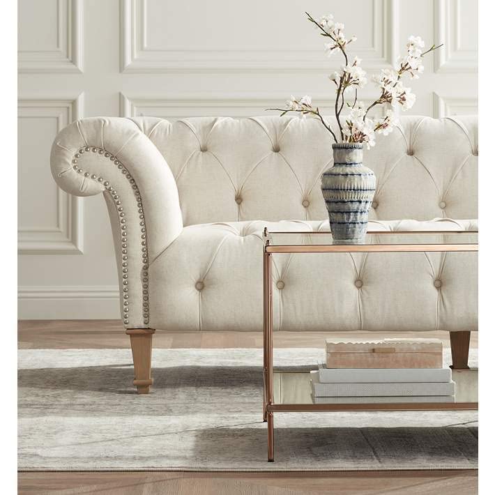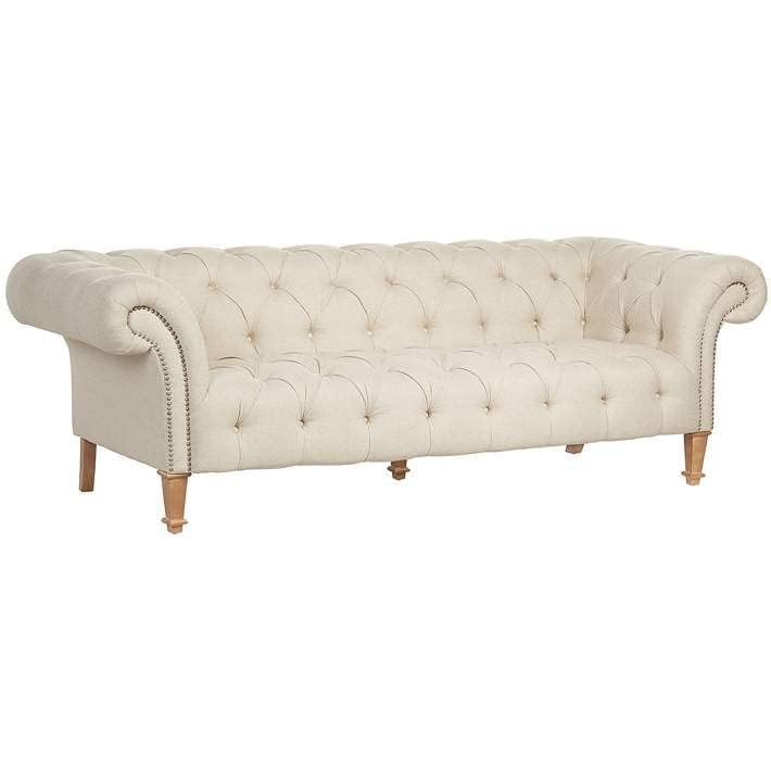 CHESTERFIELD STYLE: Designed with the Modern Chesterfield style in mind, this piece hits all the key elements, with deep button tufting, nailhead accents, scrolled arms, and turned legs.