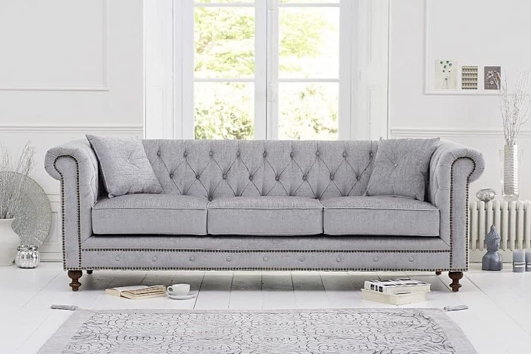 CHESTERFIELD STYLE: Designed with the Modern Chesterfield style in mind, this piece hits all the key elements, with deep button tufting, nailhead accents, scrolled arms, and turned legs.