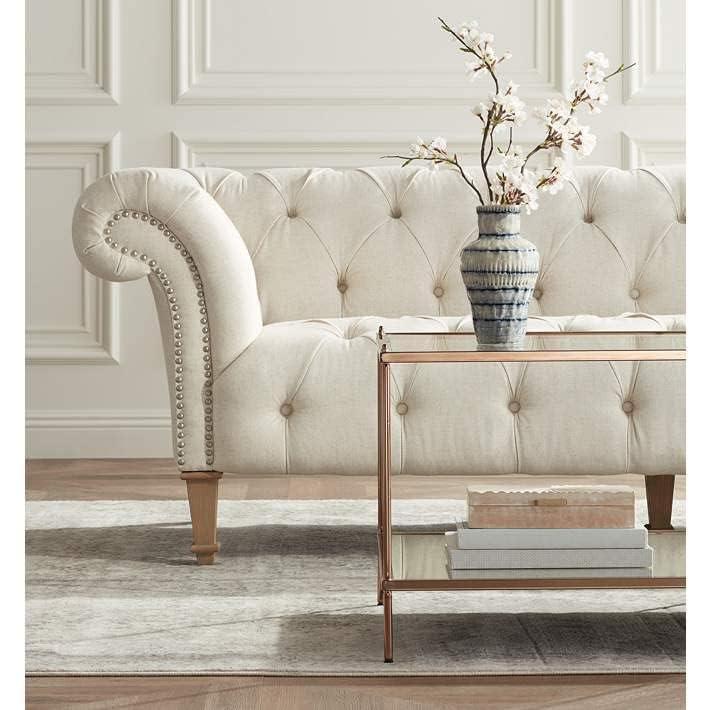 BEXLAR FURNITURE Traditional & Luxury 3 Seater Sofa Modern Looking Valvet Tufted Fabric Chesterfield Sofa Wooden Leg for Bedroom, Living Room, Dining Room, Office, and Hallway-(Beige).