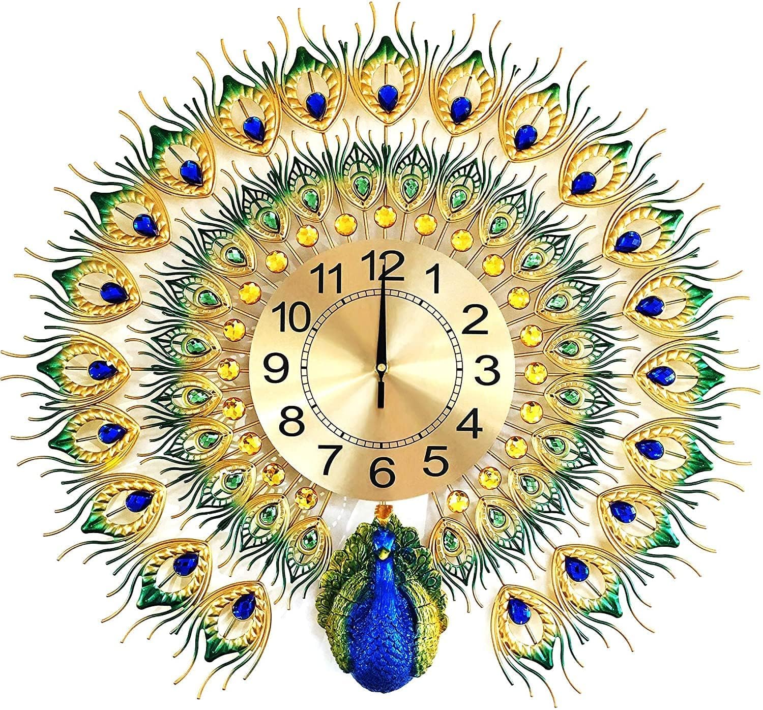 🦚UNIQUE PEACOCK DESIGN: Exquisite Bohemian Style Crystal Large Wall Clock, Made From Alloy And Artificial Diamond Perfect For Living Room And Bedroom.