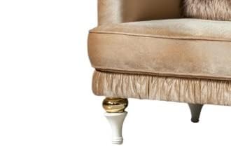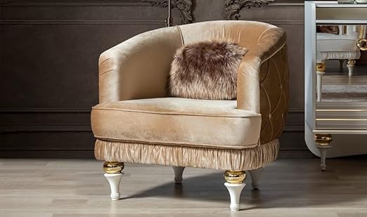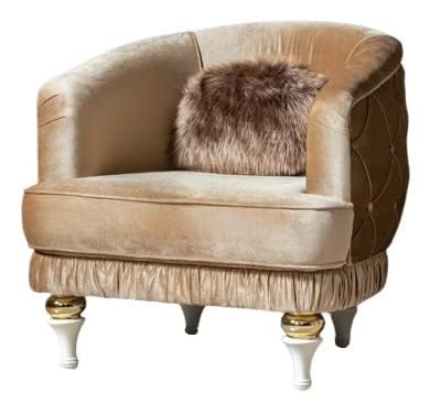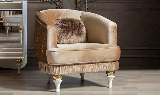 FEATURES: Super Soft Cushions; 3x Comfortable; Upholstered Cushion back Armchair with Solid Wood Legs Modern Scalloped Shell Design Arm Chair, Comfy Single Sofa Chair Imperia Collection Stylish, Modern & Luxury. Contrasting adds lovely detail to the Modern style.