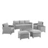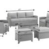 Specification : Furniture Color: Silver, Cushion Color: Grey, Frame Material: Powder Coated Iron, Furniture Material : Rattan & Wicker, Cushion Fabric: Waterproof, 1 Three Seater Sofa Dimensions: 69″L×25″W×31″H, 2 Single Seater Sofa Dimensions: 25″L×25″W×31″H, 2 Ottomans Dimensions: 17″L×17″W×16″H, 1 Side Table Dimensions: 17″L×17″W×17″H, 1 Center Table Dimensions: 36″L×22″W×16″H, Cushion Thickness: 3″