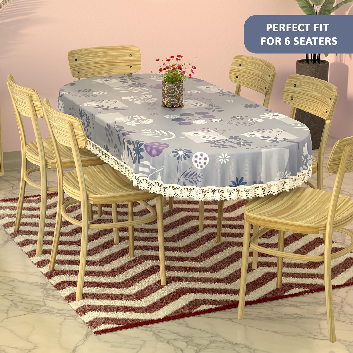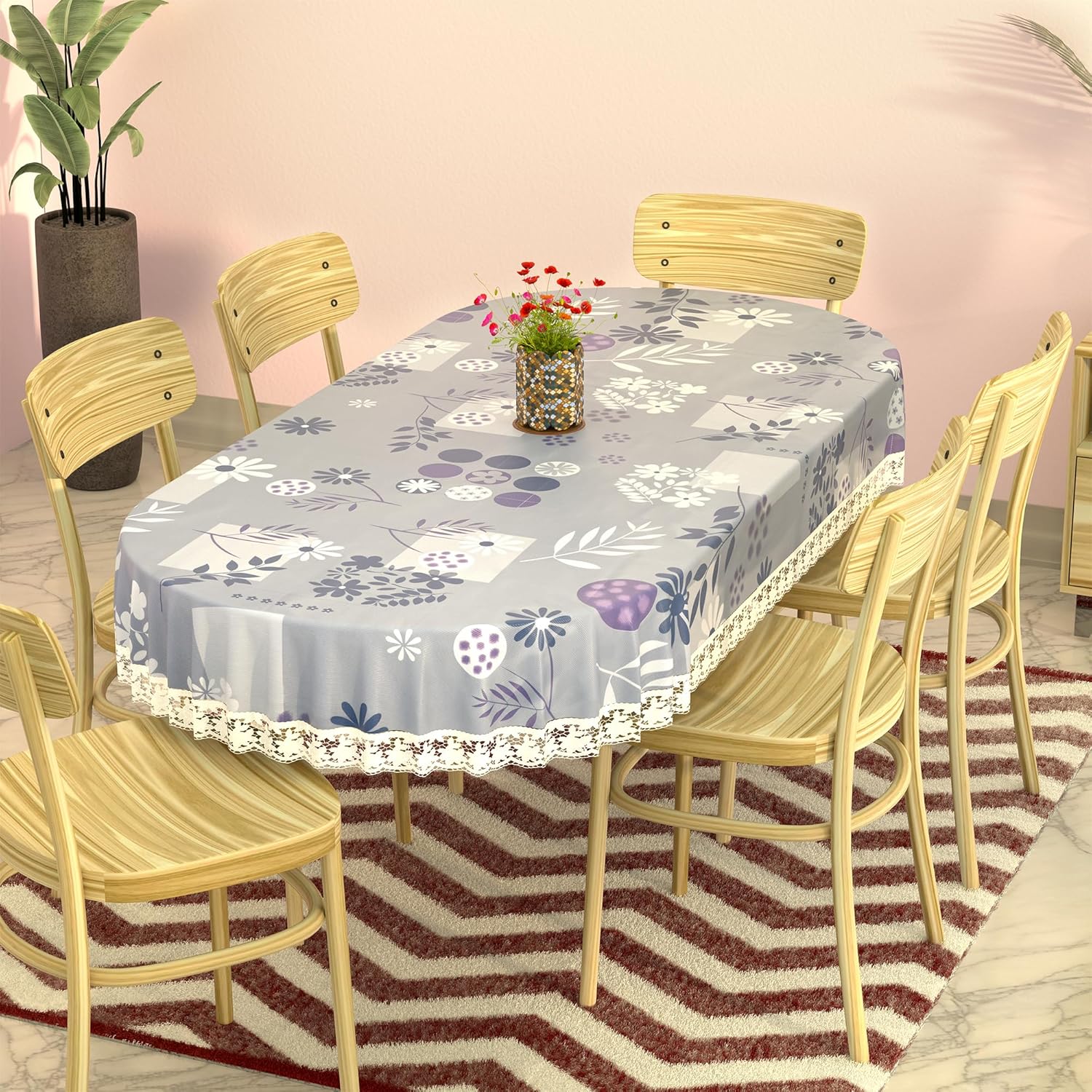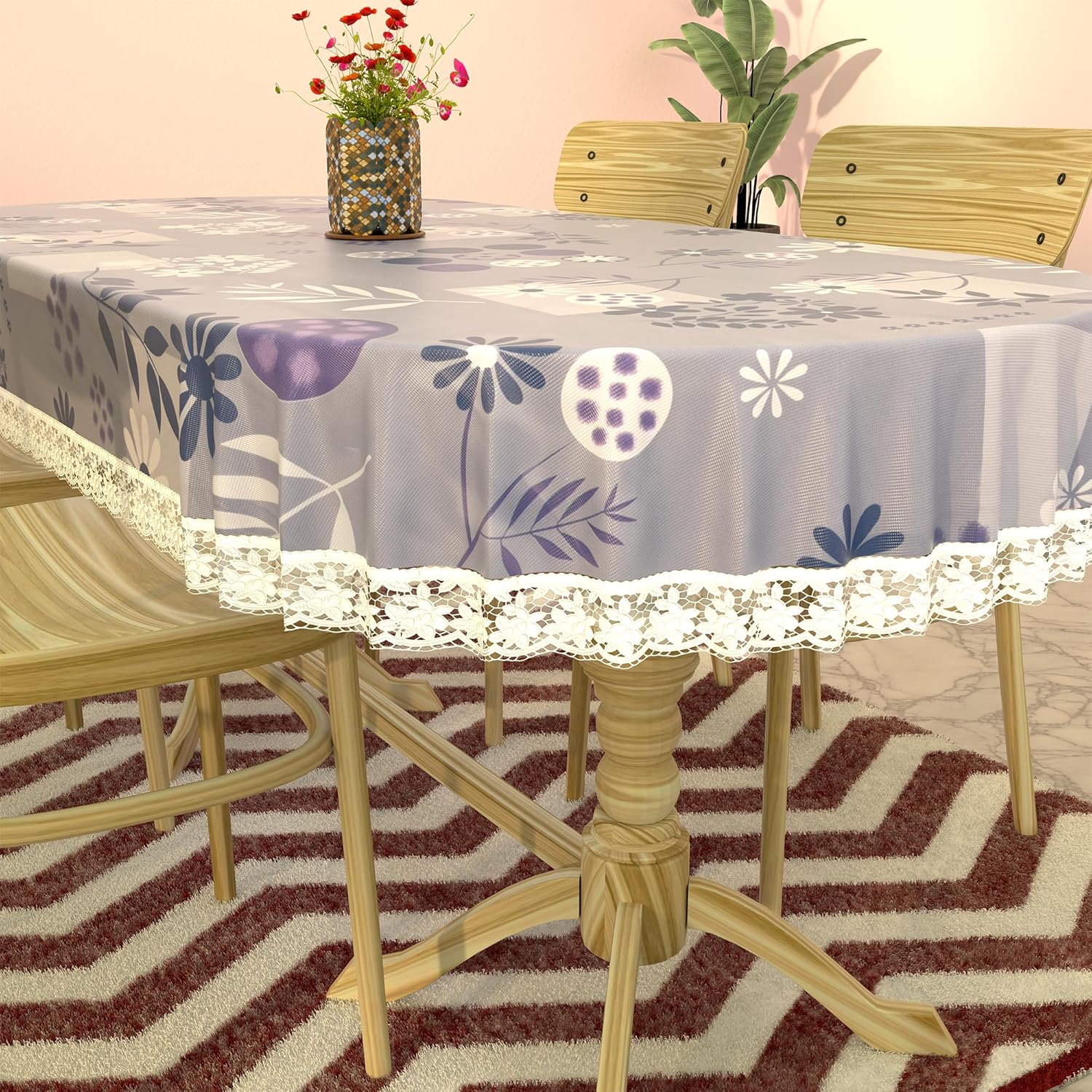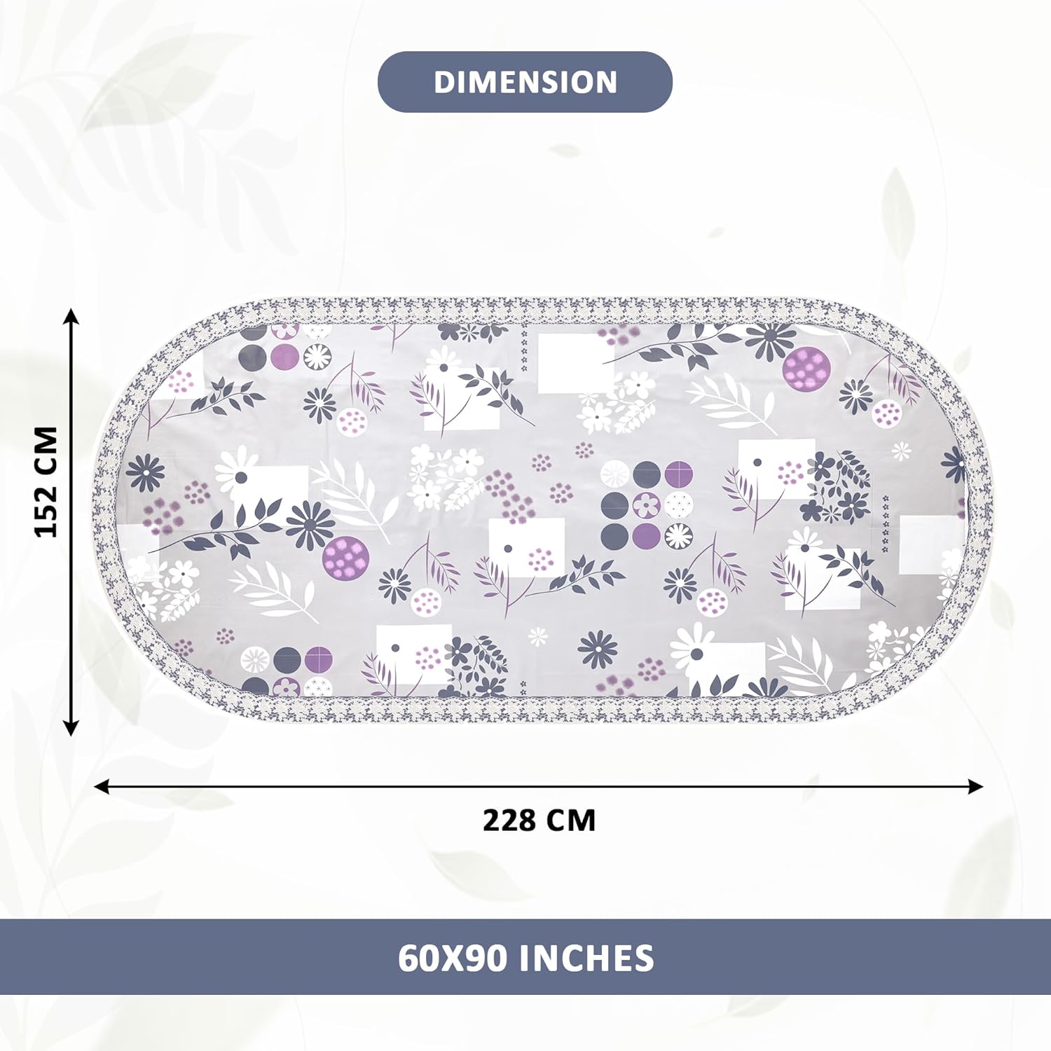 ✅ Package Contains – (1 Pcs) 6 Seater Dining Table Cover | Color – Flower Circle Print – Grey | Material – PVC | Product Dimensions – 152x228x1 cm