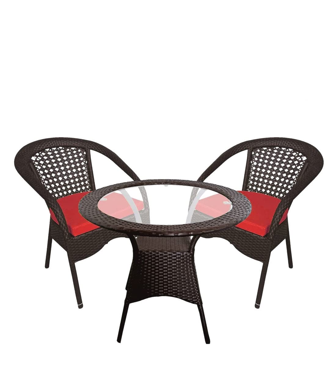 Made of durable HDPE material With Quality Handwoven Synthetic Rattan UV protected table-top makes, perfect for Home & Garden Outdoor use, Balcony Furniture Set Is Perfectly Design For Comfort Lover