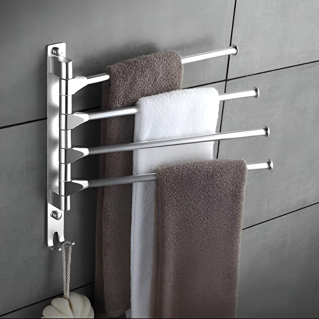 𝐌𝐮𝐥𝐭𝐢𝐩𝐮𝐫𝐩𝐨𝐬𝐞 & 𝐬𝐩𝐚𝐜𝐞 𝐬𝐚𝐯𝐞𝐫- Our towel hanger for the bathroom has got outstanding looks, it portrays its brilliance in the kitchen, living room, and bedroom. 4-arm towel hanger can store multiple bath towels & could be folded off when not in use, which enables it to dry towels faster than any other ordinary towel rod for the bathroom, be highly functional & space saver.