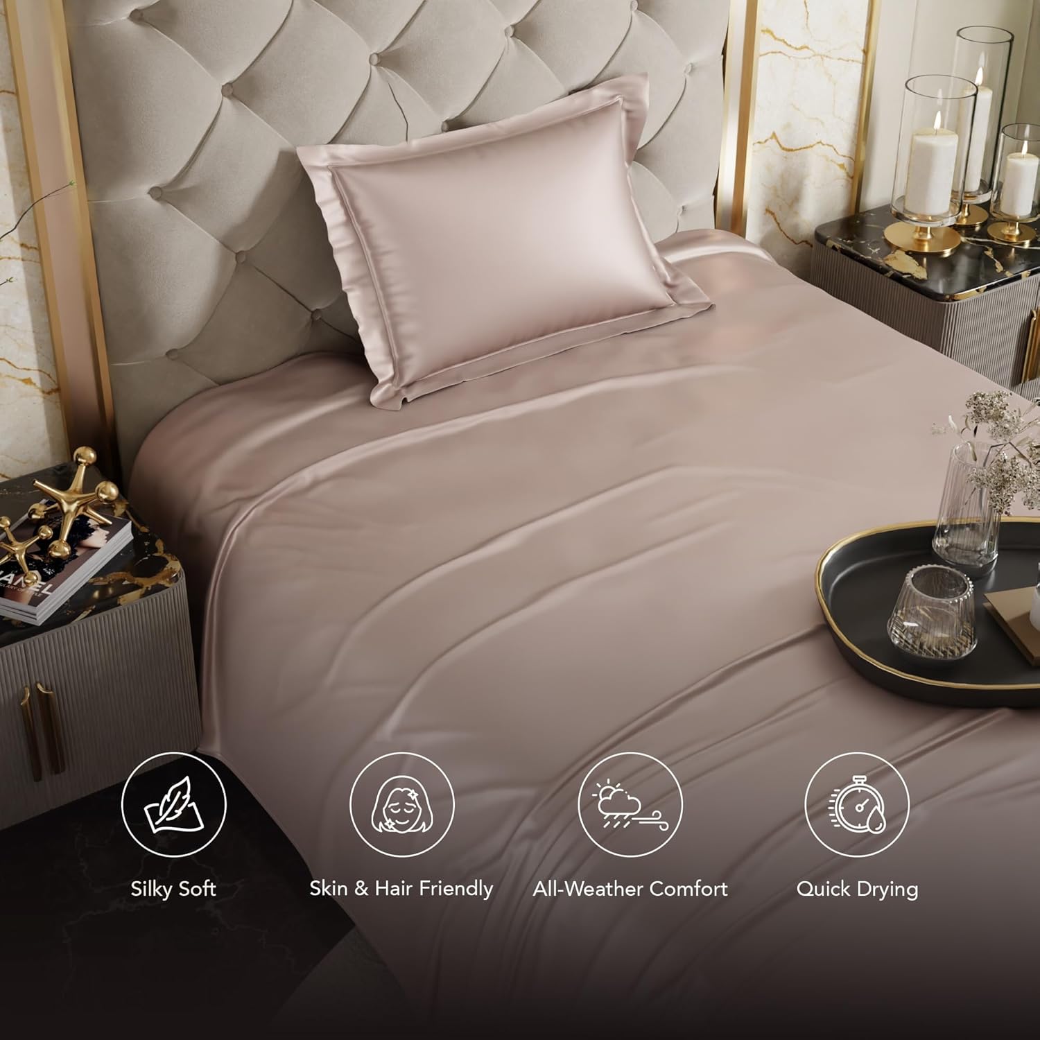 Easy Care & Effortless Maintenance: Spend less time on chores with our easy-care satin bedsheets. These bed sheets for single beds are machine washable, made from quick-drying fabric, and resistant to wrinkles and shrinking. They provide cooling comfort in summer and warmth in winter, making them perfect for any season and ideal for air-conditioned rooms.