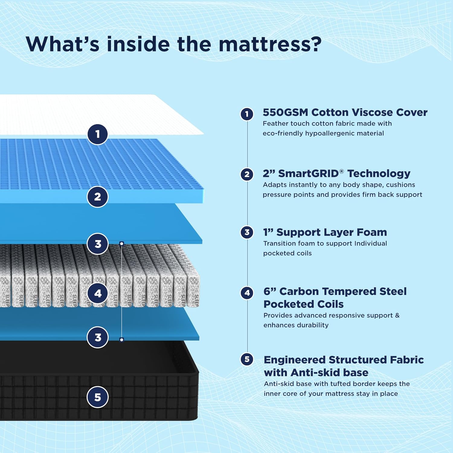𝗣𝗿𝗼𝗺𝗼𝘁𝗲𝘀 𝗗𝗲𝗲𝗽 𝗦𝗹𝗲𝗲𝗽: SmartGRID’s 2500+ air channels allow adequate airflow for a deeper and peaceful sleep.