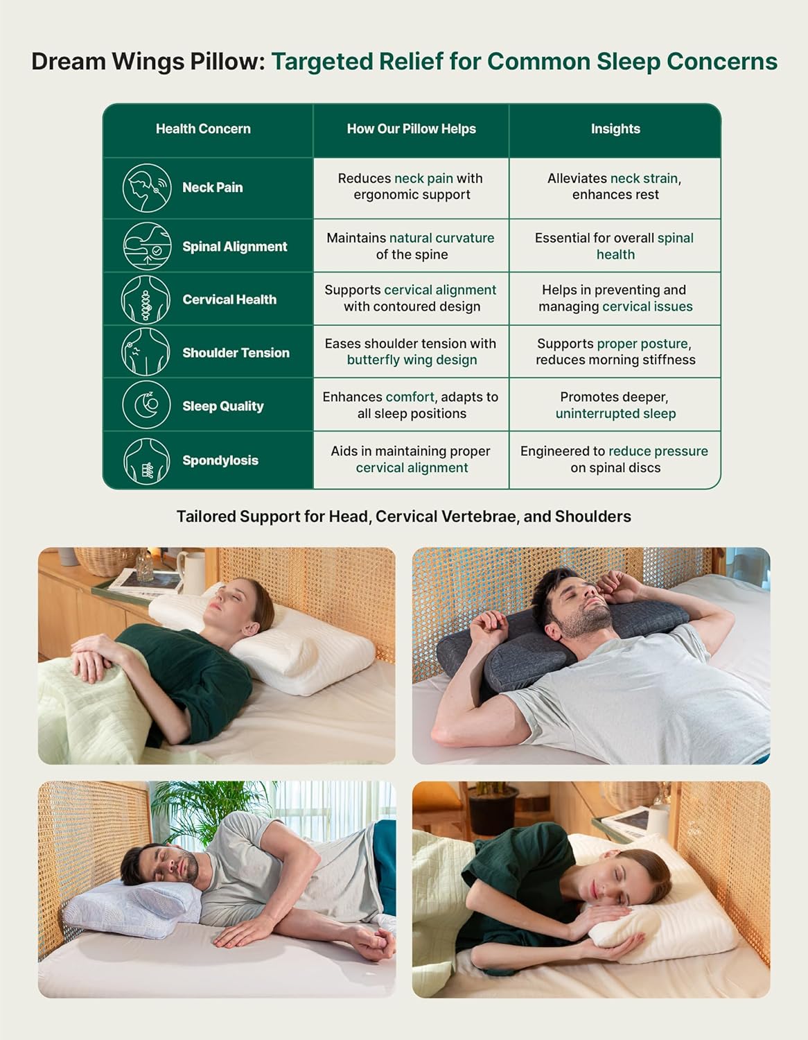 BUTTERFLY SHAPED CONTOUR DESIGN: The special contour design upholds the neck and head by distributing weight evenly and eases neck, shoulder and back pain. Moreover, it takes the natural shape of the neck and alleviates shoulder stiffness, by promoting proper spinal alignment, allowing the muscles to relax.
