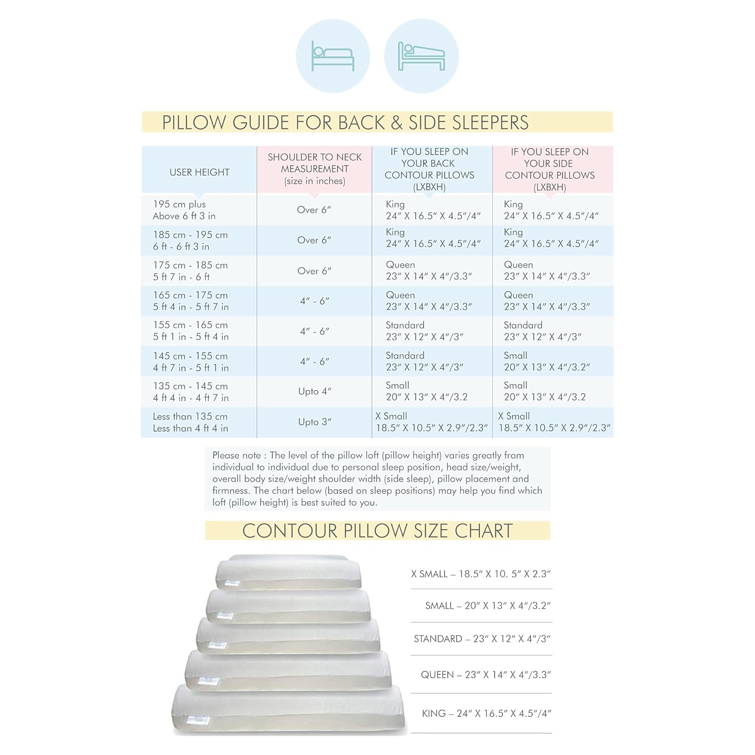 GIVE YOURSELF THREE LEVELS OF COMFORT TO SUIT YOUR SLEEPING STYLE: Choose between the high and low elevation contours on one side, or the flat profile to match your sleeping style, while ensuring perfect spinal alignment.